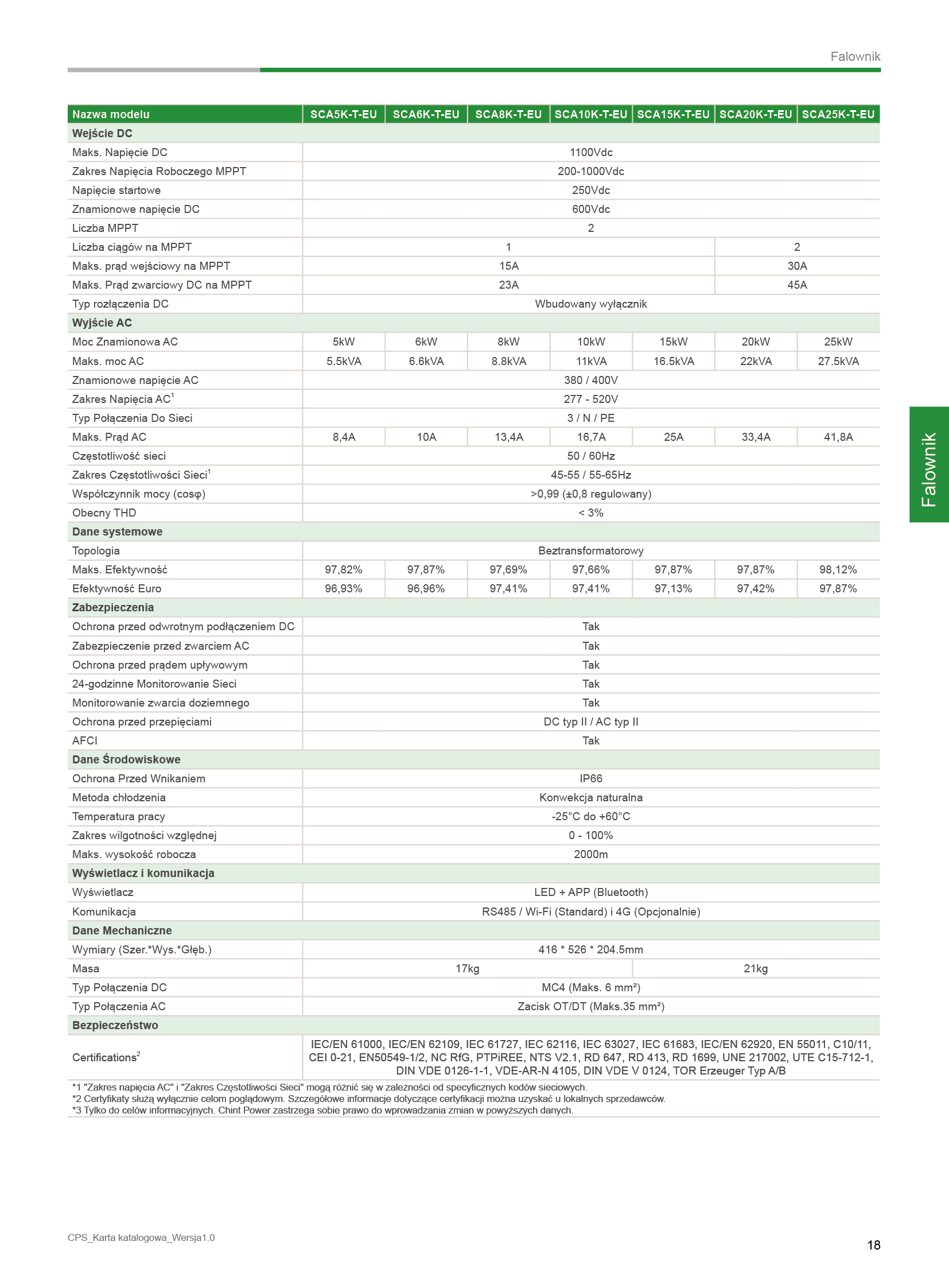Trójfazowy Falownik Stringowy 5~25kW • 2 MPPTs • System 1100Vdc