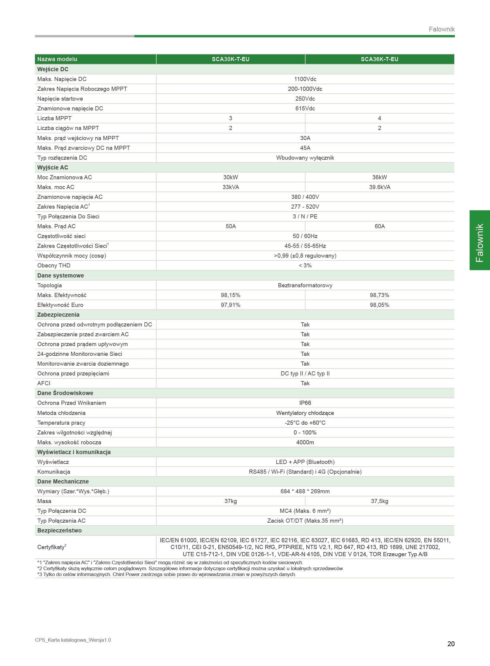 Trójfazowy Falownik Stringowy 30/36kW • 3/4 MPPTs • System 1100Vdc