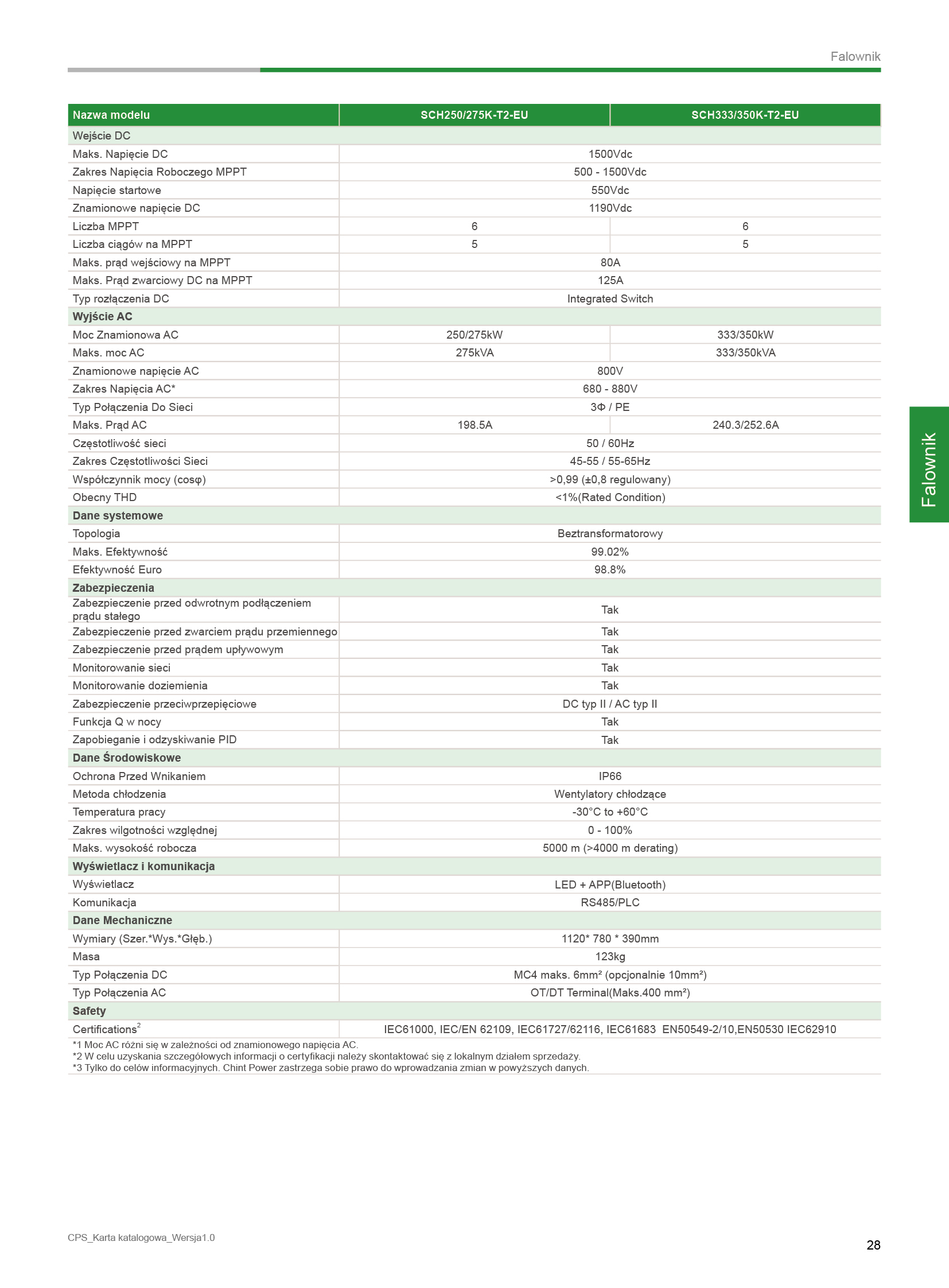 Trójfazowy Falownik Stringowy 250/275/333/350kW • 6 MPPTs • System 1500Vdc